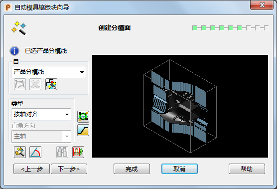 自动模具镶嵌块向导 -“创建分模面”页面