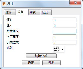 使用此选项卡可以编辑尺寸公差。
