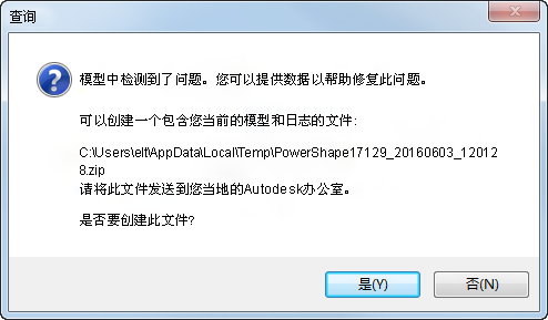 在数据库中检测到错误后,将显示一个对话框,请求用户提交模型和宏进行分析。