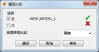 确定 - 比较两个模型。在主模型而不在次模型中的所有对象会在主模型中以被选中状态高亮显示。