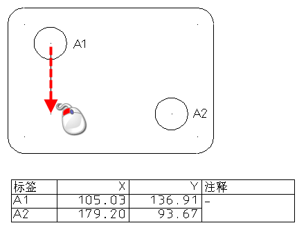 通过在对象上单击引出序号的指示器(例如圆的圆心)创建引出序号时,指示器的位置和圆的圆心将变为相关。如果移动圆的圆心,则规划中引出序号的坐标会更新。