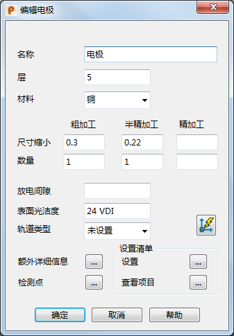 按钮可显示“矢量放电”对话框。使用此对话框可以编辑矢量放电的类型、提取方向、放电深度和矢量间隙。您还可以运行电极提取仿真。