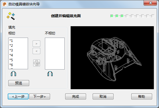完成 - 如果此时选择该选项,将会退出“自动模具镶嵌块向导”,并保留您到目前为止所做的任何更改。
