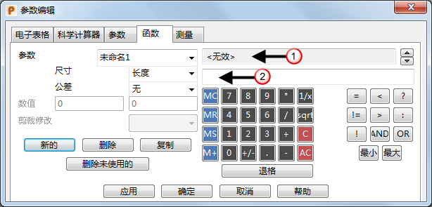 特定于科学、“参数”、函数和“测量”选项卡的选项等同于“计算器”对话框上的选项卡。