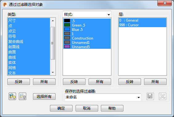 - 保存过滤器并关闭对话框。在图形窗口中,您仅可以选择对话框上所指定的这些项目。