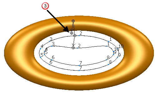 注: 如果点位于内部,并且接近参考曲线的中心,则最近的点可能位于参考曲线的上部或下部,从而在摹仿变形曲面中创造间隙。