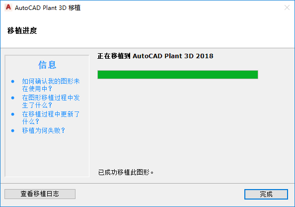 7. 单击“移植”。“图形移植进度”页面将指明移植的进度。