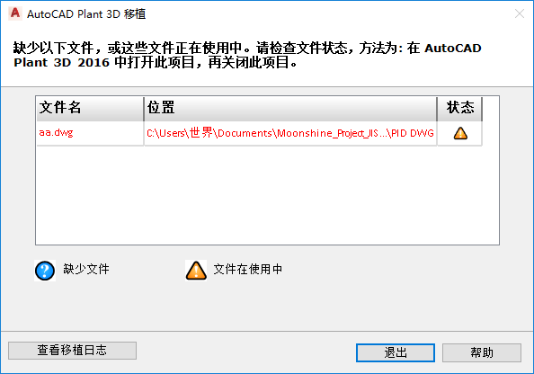 只有在项目及其相关图形可用并锁定之后,才可移植到 AutoCAD Plant 3D toolset。