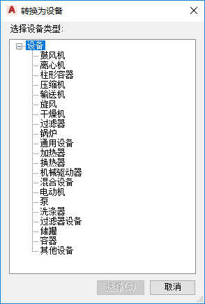 显示设备类型列表。单击要将 AutoCAD 对象转换为的设备类型。