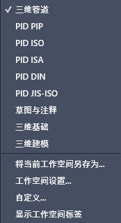 使用工作空间时,只显示与任务相关的菜单、工具栏、选项板和功能区。