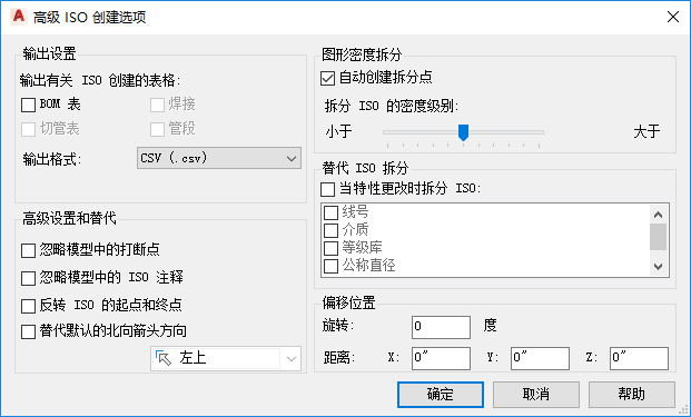指定相较于生成的图纸数量,在 ISO 图形的图纸中允许的对象数量的首选项。设置“高”密度级别将导致更少图纸,在每张图纸上具有更多对象。