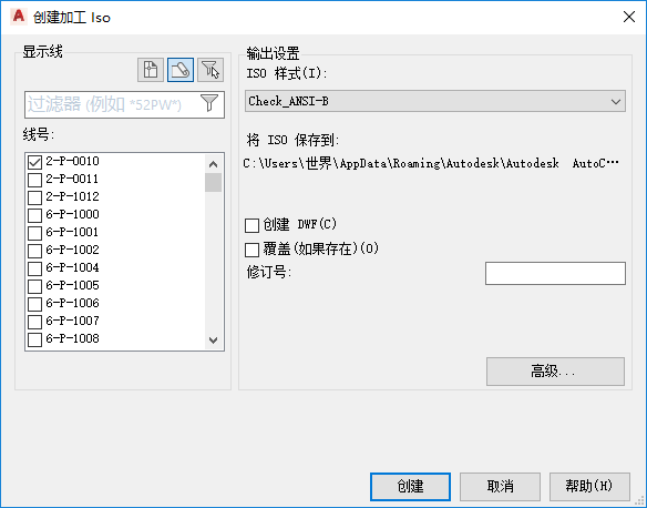 创建加工等轴测图形。指定 Iso 类型、覆盖选项和 DWF 输出。