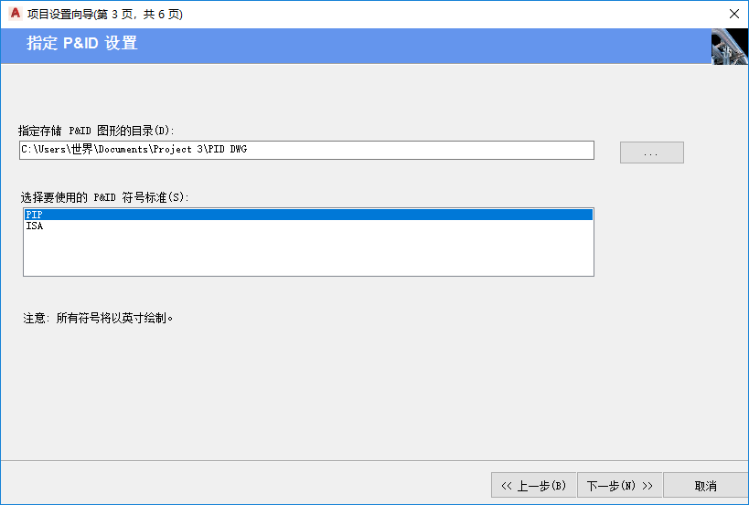 “项目设置向导”页面 3 - 指定 P&ID 设置