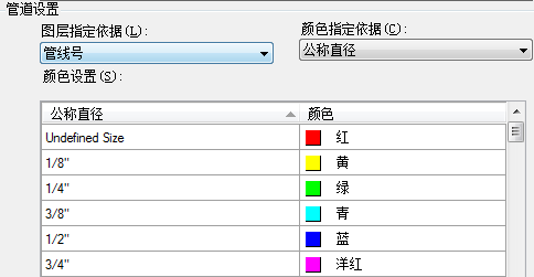 - 按介质指定图层和按管道尺寸指定颜色
