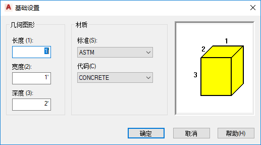 1. 在功能区上,单击“结构”选项卡 “零件”面板 “设置”菜单 “基脚设置”。