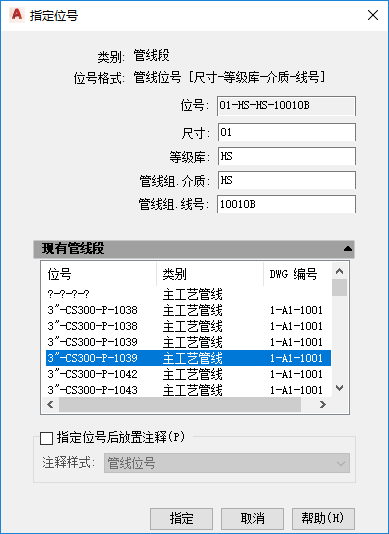 如果管理员已设置位号格式,在添加需要位号的元件或线时将显示“指定位号”对话框。