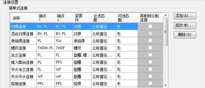 无法自定义简单式连接中可用的紧固件列表。另外,不能添加到 Plant 3D 类别定义。