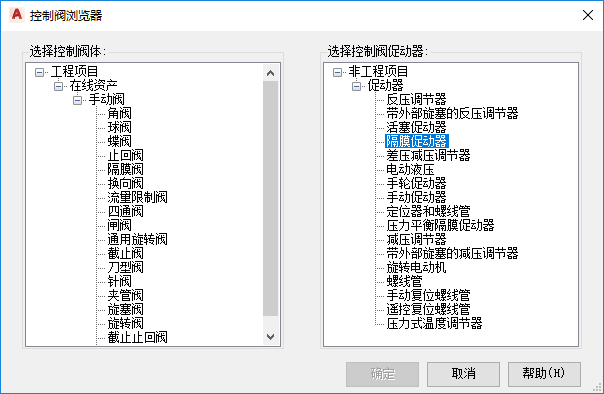 “控制阀浏览器”对话框