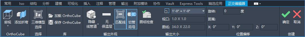 “正交编辑器”上下文选项卡是“三维管道”工作空间的一部分。
