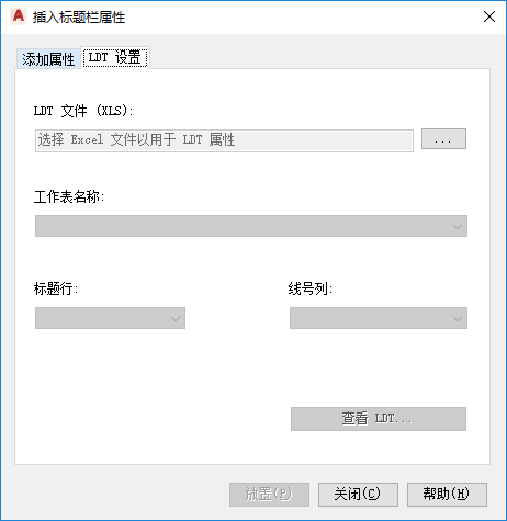 - 在“插入标题栏属性”对话框中,单击“LDT 设置”选项卡并执行以下操作: