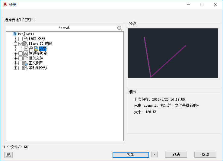 选择要检出的单个文件、多个文件或文件夹。 单击树中的复选图标,以选择或清除已选中位置的检出。
