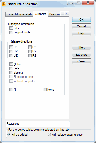 Select the Supports tab in the Nodal Value Selection dialog to select support parameters for presentation.