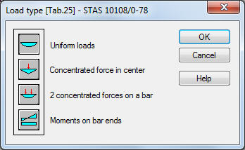 The dialog box below enables definition of a load pattern for the analyzed beam.