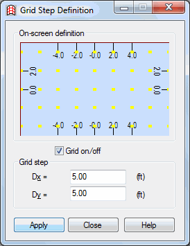 Note: You can also access this dialog and edit the grid step after selecting one of the main commands (definition of elements, for example).