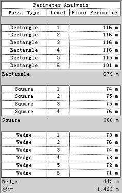 明细表根据体量楼层的复合周长,显示了总线性尺寸标注。 使用该信息可估计该设计的建筑成本。
