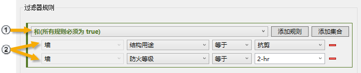 例如,要创建可识别 2 小时防火等级门的过滤器,请选择“门”类别。要创建可识别 2 小时防火等级门和墙的过滤器,请选择“门”和“墙”类别。