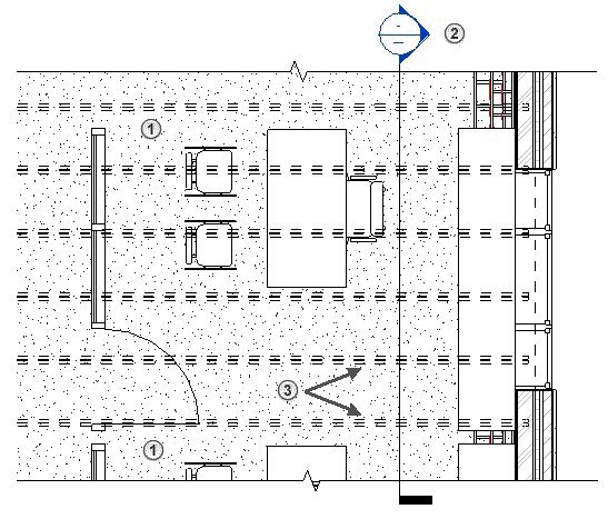“规程”属性设置为“结构”的剖面视图的标记显示。 该平面不显示已指定给其他规程的视图标记。