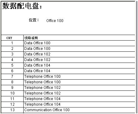 具有一个回路列的数据配电盘明细表