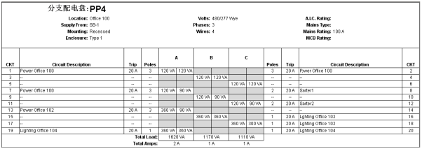 多回路分支配电盘明细表 - 两列