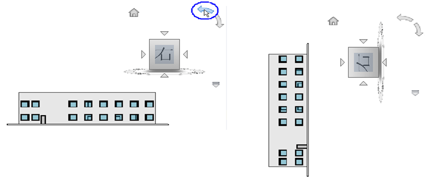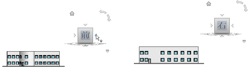 从一个面视图查看模型时,ViewCube 附近会显示两个滚动箭头按钮。使用滚动箭头可以围绕视图的中心以顺时针方向或逆时针方向将当前视图旋转 90 度。