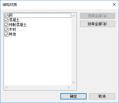 选择要显示的每种材质,并单击“确定”。 默认情况下这些材质都被选中。