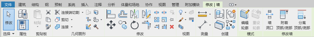 使用某些工具或者选择图元时,上下文功能区选项卡中会显示与该工具或图元的上下文相关的工具。 退出该工具或清除选择时,该选项卡将关闭。