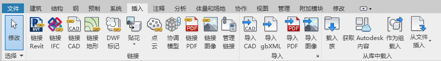 创建或打开文件时,功能区会显示。它提供创建项目或族所需的全部工具。