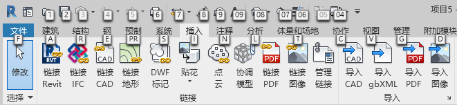 如果功能区选项卡带有包含附加工具的扩展面板,则在键入其按键提示后,将显示该面板以及那些工具的按键提示。