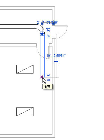 拖曳控件,以将电缆桥架管段移动或延伸到新的端点,或与另一个电缆桥架连接。