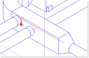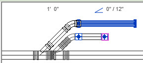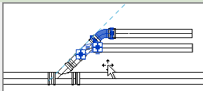 在预制零件(如 T 形三通)中,当通过对齐交叉支管追踪线以插入或剪切成直线时,请通过在直线边缘单击(不是在直线的中心线单击)的方式将零件与交叉口对齐。