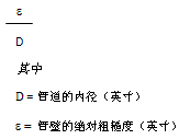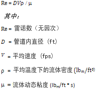 | 流量状态 | 流量状态由雷诺数的值来确定。雷诺数小于 2,000 时视为层流。 雷诺数大于 4,000 时视为紊流。介于 2,000 与 4,000 之间的雷诺数不可预测,且不会执行损失计算。紊流有两种类型:过渡流和完全紊流。 |