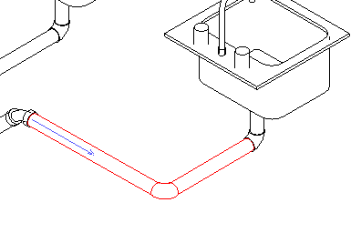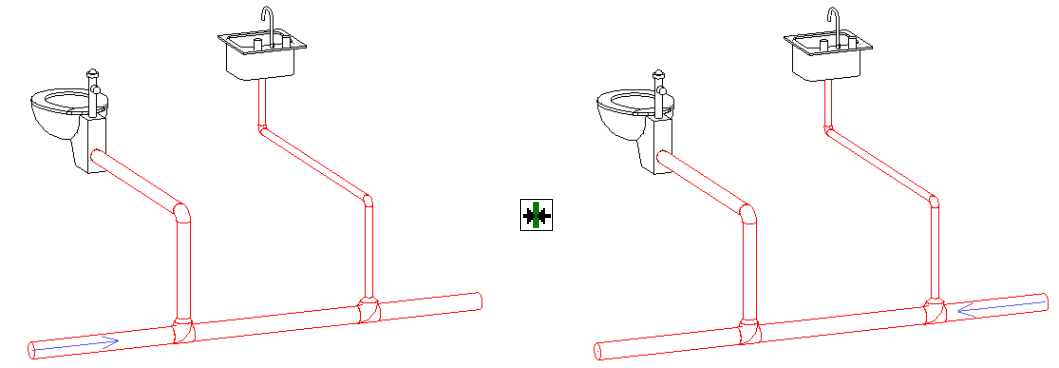 此时参照端会显示一个箭头。坡度的参照端被设置为选定管道部分的最低点。