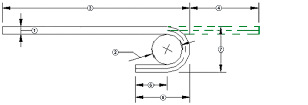 以下图像描述了用于定义钢筋弯钩的参数。 每个尺寸标注的关键点如下所示: