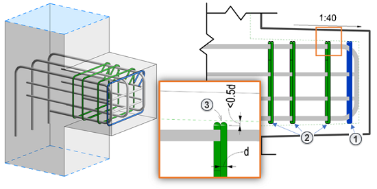但是,钢筋会以任意尺寸弯曲。 其位置和几何图形会更具对其主体几何图形的考虑以及其他钢筋的存在进行自动设置。 一旦设置了几何图形,指定的限制条件将相对于其主体的保护层参照进行移动和调整,以响应模型中的更改。