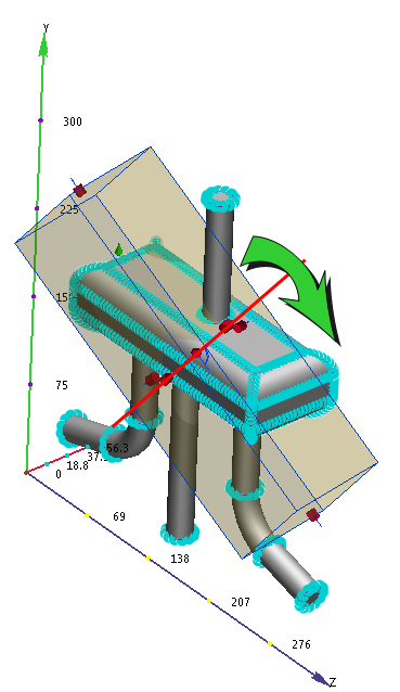 When we change the +X Angle to 45 degrees, the region rotates 45 degrees about its local X axis, and not the global X axis.