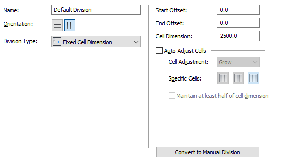 When you specify a fixed cell size in a grid, you can control how the cells of the grid adjust to accommodate any leftover space. This space occurs if the length (or the height) of the door/window assembly cannot be evenly divided by the fixed size of the cell.
