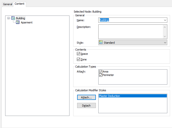 For example, if you have a Balconies zone node, you can attach a calculation modifier that reduces all calculated space values in this zone by 50 percent.