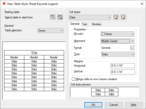 Keynote legends use AutoCAD table styles. Use this procedure to modify the available table styles.