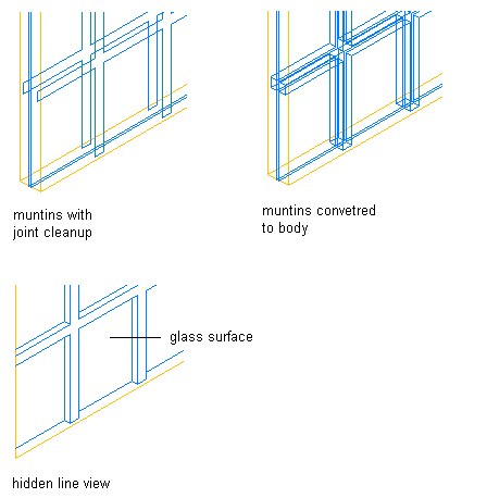 | convert all the muntins to one body with the joints cleaned up | under Muntin, select Convert to Body. |