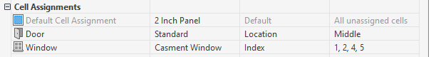 A cell assignment defines the infill definition used for the cells. You can use one cell assignment to assign the same infill to all cells, or you can create multiple cell assignments to assign different infills to different cells.